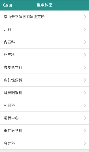 【重点科室】提供本院全部科室重点科室信息,方便患者了解医院科室资料。