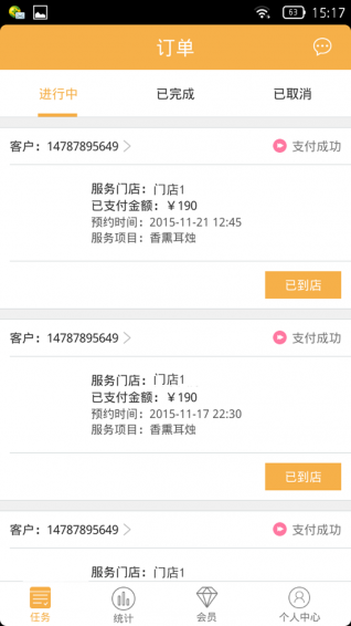 提供上门按摩服务管理的手机客户端