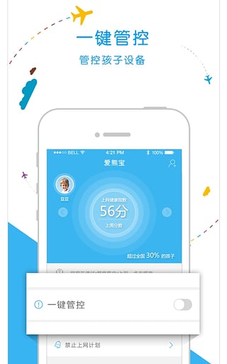 爱熊宝app是专为家长管理孩子上网打造的应用,能随时管理孩子的智能设备,支持对孩子的上网行为进行监控,能自由设置孩子的上网时间,是您管理孩子使用智能设备的好帮手。作为控制端可以控制孩子的多台设备,进行一键锁屏、设置锁屏闹钟等多种方式,来控制孩子的上网时间,帮助孩子养成合理健康的使用网络的好习惯~