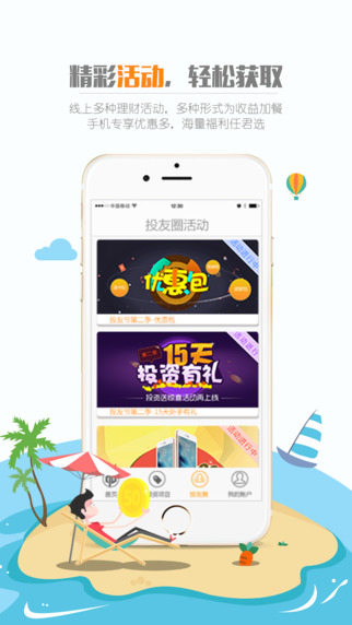 3.账目查看:充值、提现、账目流水,投资管理,银行卡管理,邀请好友、奖券中心等功能,均可一键查看;