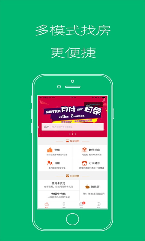 1.精准搜索你想要的房源,整租,合租,地图找房,地铁找房等多条件都满足你。