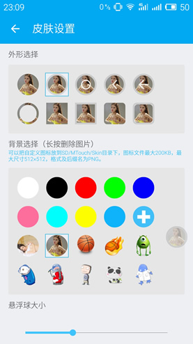 *悬浮球有多种颜色,形状。支持自定义图片背景。