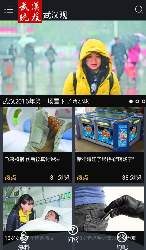 “武汉观”App脱胎于传统媒体但不只做新闻资讯,还发挥武汉晚报“三镇家庭第一报”贴近生活、服务读者的特点,搭建起一个“问答”平台,解决广大市民在生活中遇到的各种问题,通过悬赏的方式让用户的知识和经验变现,实现“认知盈余”的有偿分享。