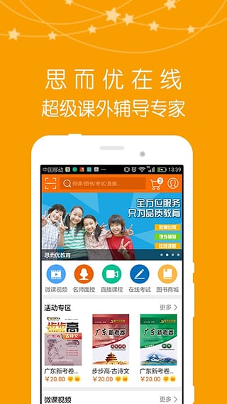 1、思而优在线app为中山市思而优教育集团为广大学子及家长打造的一款包含微课学习、教辅书选购、课程直播、辅导班报名和在线考试等内容和功能的教育辅助综合性应用;