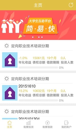 【主营业务】 大学生消费贷;大学生创业众筹;定向职业培训分期;商业贷款;短期商业贷款。