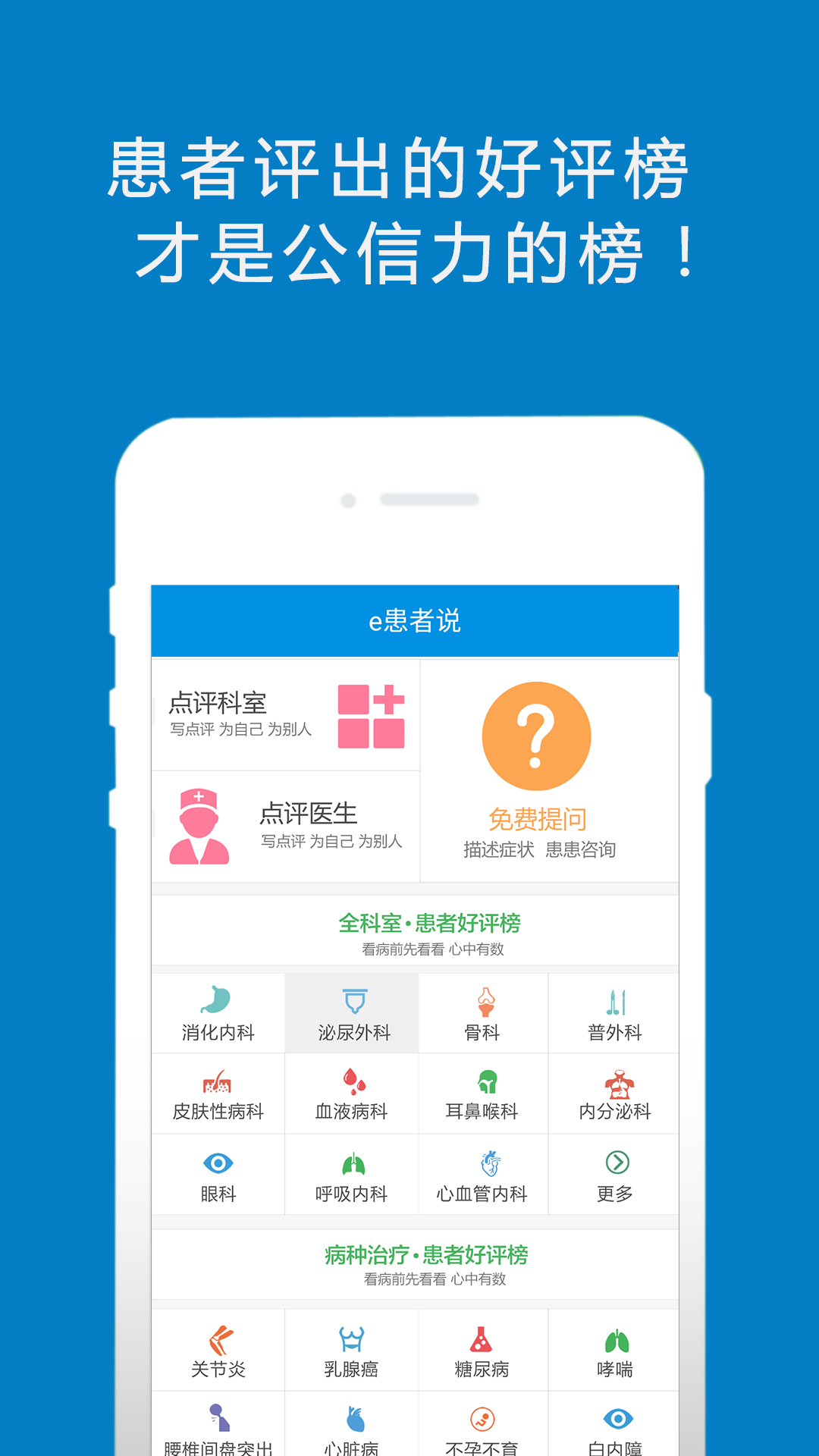 1、看病前先看看,心中有数,e患者说是患者评出的全国医院、医生好的评榜;