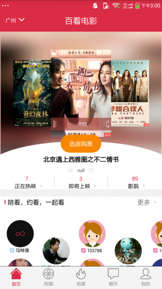 新增聊天陪看功能,选择周围的好友,一起去看电影