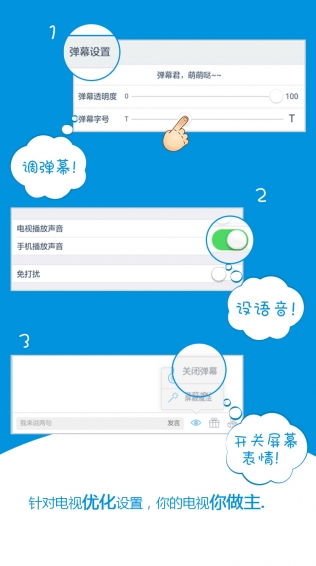 弹弹体育是新型看球神器,能让您躺在沙发上看电视球赛时,边聊天,边吐槽,边主播,和朋友在自家电视屏幕上一起乐享体育。 弹弹体育不改变您原有的收看习惯,现在您可以同万千球迷一起在弹幕里吐槽,可以找到同一支球队的球迷一起喷黑裁判,可以和小伙伴们足不出户“面对面”畅聊,还可以给美女小白球迷当解说。