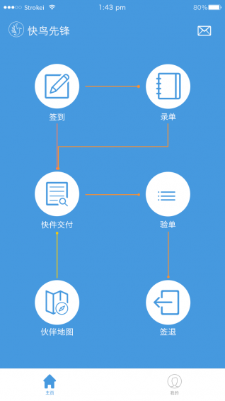 这个版本主要功能是利用集中代派模式提高快递员效率,主要实现用户实名认证成为快鸟先锋,快鸟先锋签到,录单,交付,验单,处理疑难件这一系列业务逻辑。