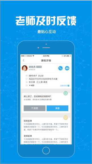 最贴心服务:首次课不满意不付费,课程提醒,老师及时反馈,贴心满足您的家教需求。