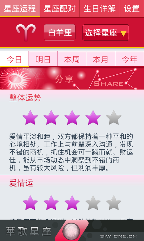 1、星座每日、每周、每月、今年运程;