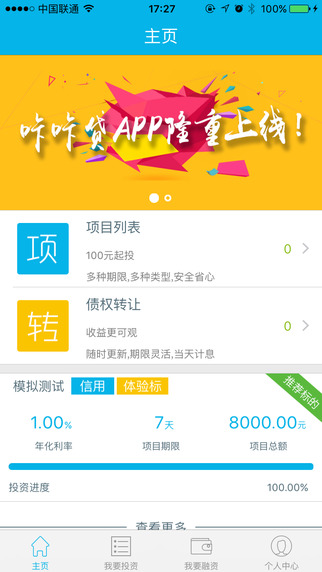 一款线上p2p理财平台,致力于为有投融资需求的企业和个人提供一个安全、诚信、高效、稳定的金融服务网络桥梁。当今金融产品不断衍生、投资渠道不断更新,咔咔贷希望能为您提供全方位、个性化的金融理财服务。