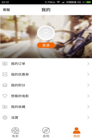 我的:可查看我的订单,我的优惠券,我的积分,想看的电影和我的收藏。