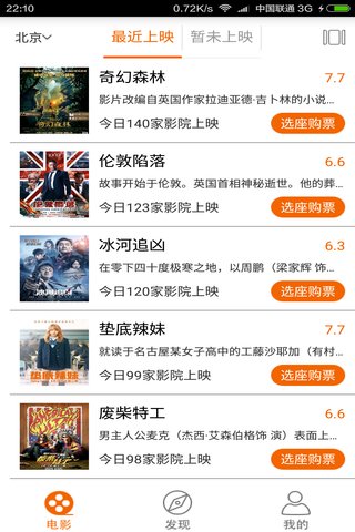 电影:查看最近上映及暂未上映的影视资讯,可在线购买已上映的电影票。