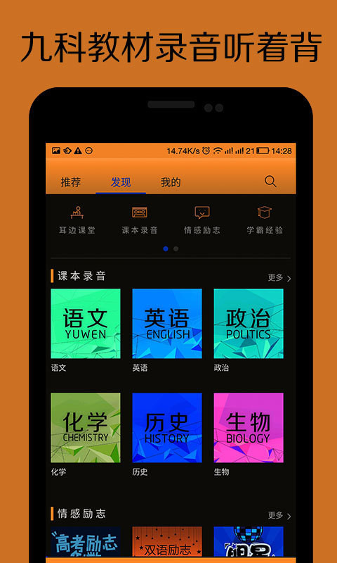 此app是高考学习、积累的好帮手!助你做好高考准备!从今天开始告别学习懒癌!带上耳机,就能学习!