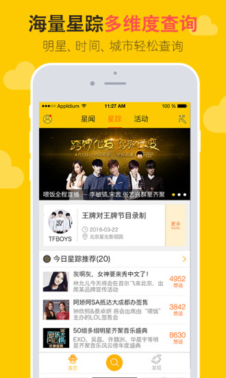 喂饭是一款专门为粉丝打造的追星软件,粉丝能够在喂饭APP中随时掌握明星最新行程,免费参与全国各地的明星活动、加入粉丝会、欣赏明星海量高清大图。喂饭APP--让追星更简单。