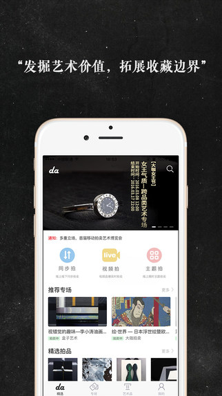 大咖拍卖app是一款以拍卖为主的创新型艺术品交易平台,具有同步竞价、视频直播、报名参拍、收藏、红包赞助、钱包理财、支付、竞拍宝等功能,为全球藏家、艺术家、拍卖行、画廊、经纪人等提供随时随地竞拍服务,让淘宝和捡漏变得有趣好玩!
