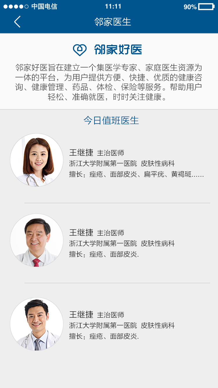 邻家好医旨在建立一个集临床专家、家庭医生、全科医生资源为一体的咨询平台。为一家人提供方便、快捷、优质的服务,服务内容包括:健康咨询、健康管理 、药品咨询、体检报告解读表现;一站式咨询宝宝健康成长、孕育新一代、个人健康管理、父母慢性病看护的问题,内外妇儿应有尽有,让全家平安又健康。