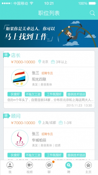 美业直聘是一个针对美容美发行业内的专业性招聘软件