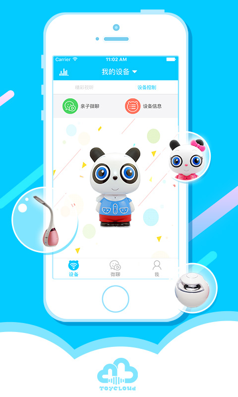 2.可以在微聊组中绑定各种智能设备,宝宝只要用玩具就可以与家长互动哦!
