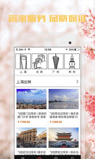 周末飞哪儿是一款旅游服务软件,为游客提供便捷的机票查询、机票比价、预订酒店等功能服务,让你旅游一路无忧,有兴趣的朋友赶快来下载吧!