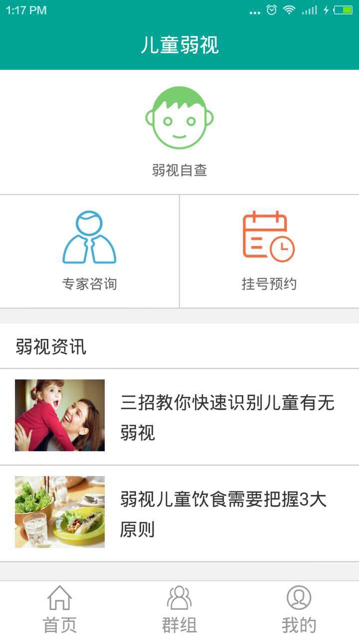 2.主要包含以下功能:近视、弱视视力自查,专家咨询,实时资讯,家庭档案,群组等功能。