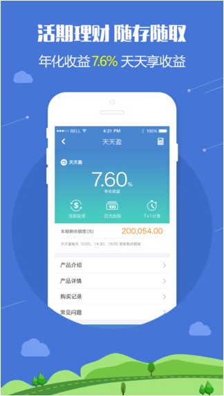 3.“天天盈”活期理财产品随存随取,7.6%年化好收益。