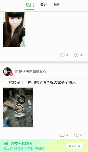 1、呼声最高的“同厂”栏目上线了,同厂好友动态一目了然,厂里新鲜事一手掌握。