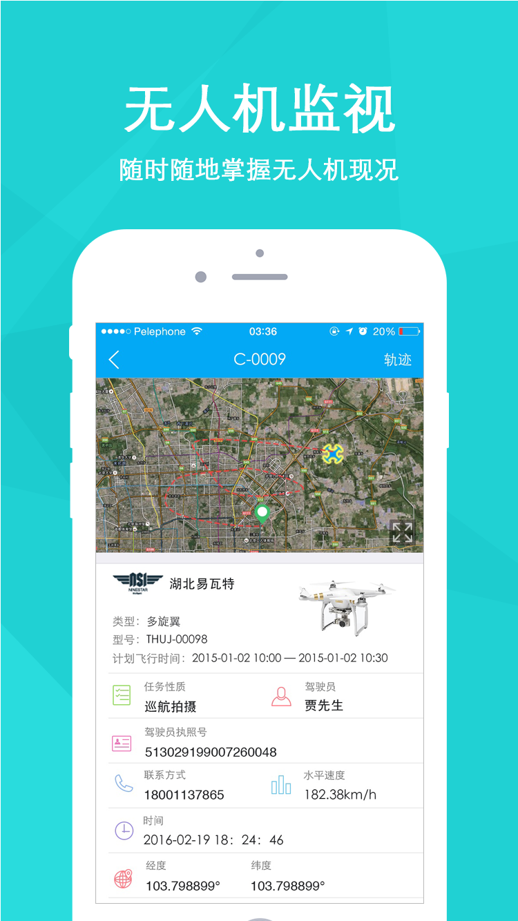 为用户提供及时准确的无人机飞行计划报备,空域数据,飞行数据监视警告等服务。