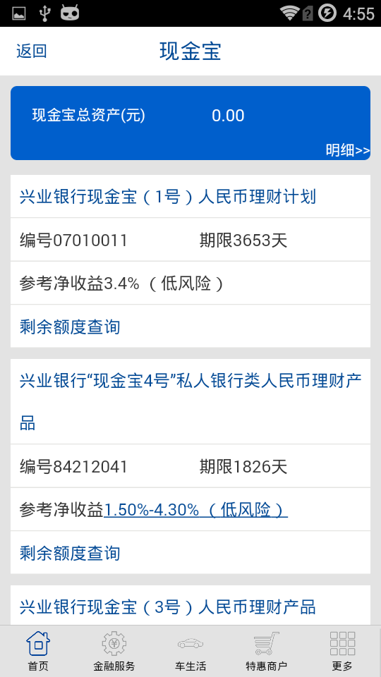 用户可以通过app购买兴业银行提供的现金宝理财产品