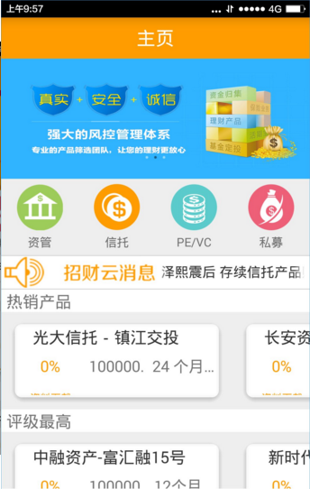 招财云是一款专业的手机金融理财应用,为你提供各类投资理财服务,专业的风控团队,可信赖的实时资讯,让专业的人来做专业的事,帮助你的资产稳固增值。