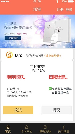 活宝,中国民生银行联手投宝金融倾力打造按秒计息、随存随取理财产品。年化收益7%-15%,存一万一年利息1500元。
