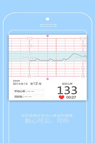 不限制胎心仪的品牌和型号,只要将胎心仪连接手机音频口,就可以实现胎心数据的实时呈现,实时采集胎儿心率、胎动等胎儿体征数据,让胎心可见、可听。同时可记录孕妇自身血压、血糖、体重等体征数据,预防妊高症和妊娠糖尿病,关注胎儿发育情况。