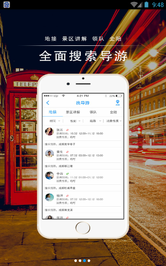 2.地接、景区讲解、领队以及全陪等全面进行搜索导游;