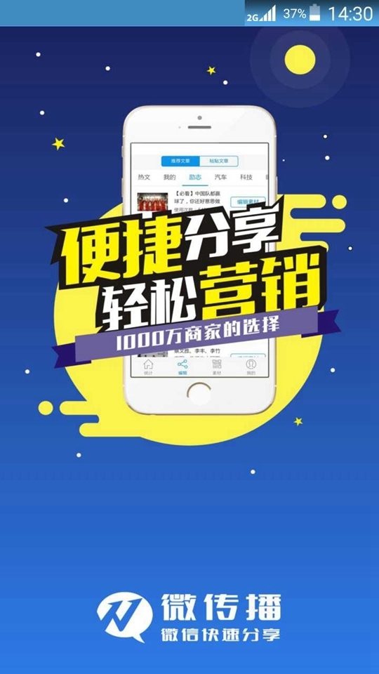 W微传播app是一款基于移动端推广的app工具,可以快速生成带有通栏图片、图文、二维码等广告的文章,通过微信、qq、微博分享等口碑传播方式快速把企业产品宣传出去。