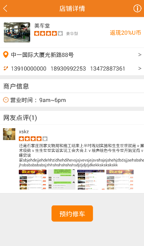 返返修车是一款集车辆维修、保养、美容等全方位的专业汽车服务平台,一键搜索附近店铺,解决车辆就近维修点查询、预订、咨询功能,到店无需排队,服务更快捷,并向用户私人定制每单必返、单单优惠的省钱政策。