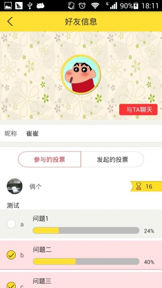 八卦投app基本为定制版所以一般只用于一个活动。你可以自己发布投票,参与投票,添加好友,与好友聊天,建立群组,管理群组,管理群成员的一款app投票软件。