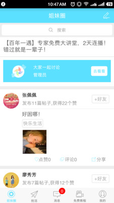 - 姐妹圈:好姐妹们自由设置朋友圈,随时随地分享工作和生活中的点点滴滴,照片、小视频、轻松段子,那些来自的心灵深处的文字。