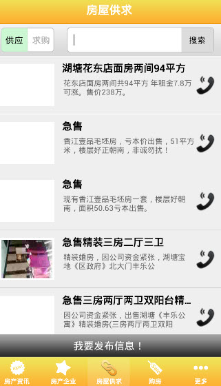 【房屋供求】:本应用利用列表的形式清晰的展示出各种产品的供求讯息。