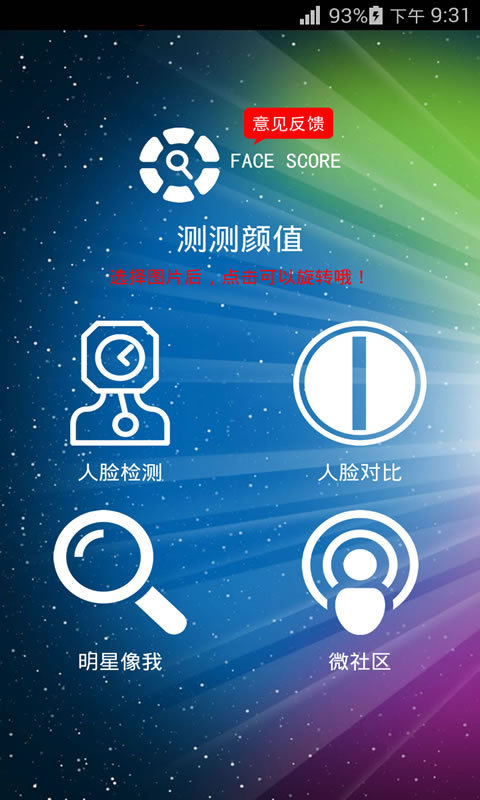 应用支持对比,对比您和其他人的相似度,看看你们有多少“缘分”,应用支持搜索,搜索您像哪位明星,看看您的“星运”。