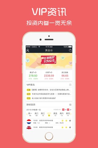 黄金谷提供一站式金融投资服务,集行情、视频直播、文字直播、黄金课堂、在线客服于一体,让您足不出户即可开启财富之旅,弹指间玩转黄金投资,把投资装进口袋。
