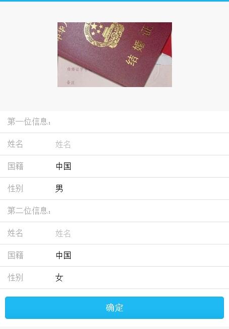 自定义2个人的名字、国籍、性别等信息,确定好之后,点击确定。