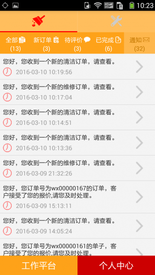 实现天下门店 员工 在线抢单(清洁订单),在线报价(维修订单),线下服务记录,包括服务照片、时间,客户评价等。