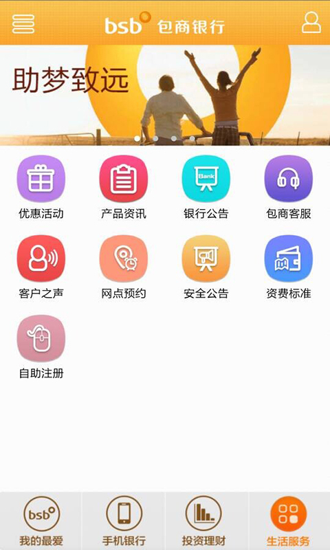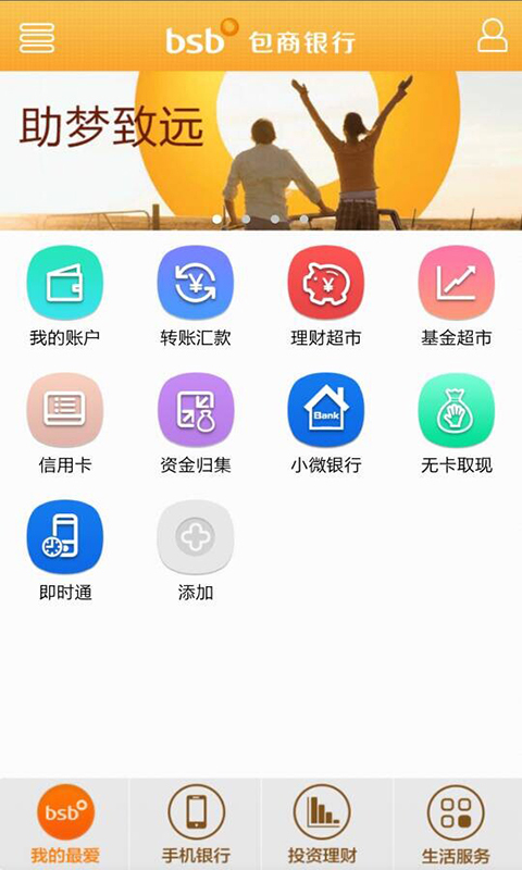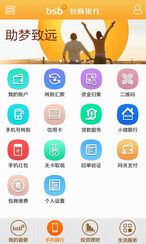 包商小微银行是根据小微客户的结算特点专门打造的移动金融服务平台,丰富实用的金融服务、时尚动感的界面设计、个性易用的功能布局、全新流畅的用户体验,助您轻松享用精彩的移动金融和移动生活服务。