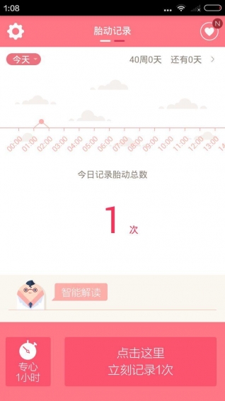 1、 随时记录:可以“专心1小时”记录胎动,也可以不固定1小时,随心记录。宝宝动一下,点一下,方便高效。