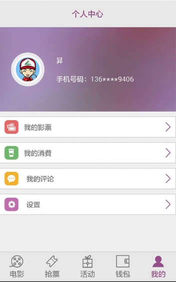4、钱包管理:您的所有电子券、会员卡、中影通卡将整合在您账户下的“钱包”内,随时查看自己余额,有钱才能任性。