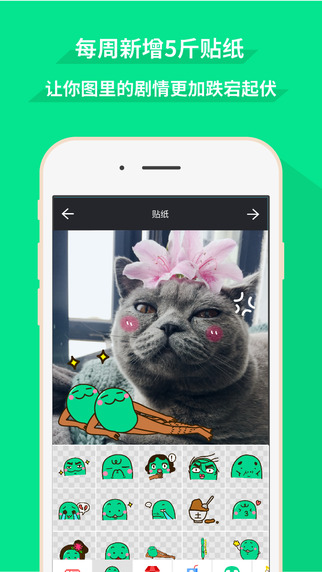 3、滤镜贴纸:多款专业滤镜、 nice、个性化的贴纸保持大大大大量更新!给你的动图作品赋予更精彩的表现力。