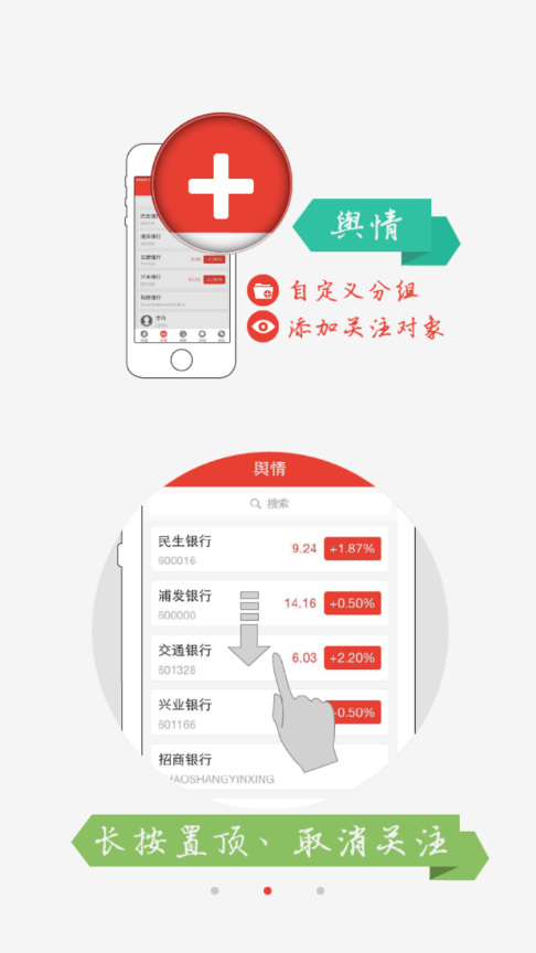 “舆情”可实现对自身及关注对象舆情监测,以方便用户对信息进行添加及取消关注、置顶、分享、收藏、分组等功能。