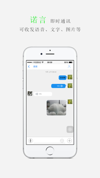 4、即时通讯:诺言是一款及时通讯的软件,连接了孩子,家长,和学校。可通过它来发送信息、语音、图片等讯息,使用方便,操作简单。