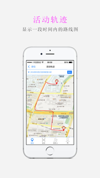 2、活动轨迹:可查看一段时间内孩子的地理活动路线图。